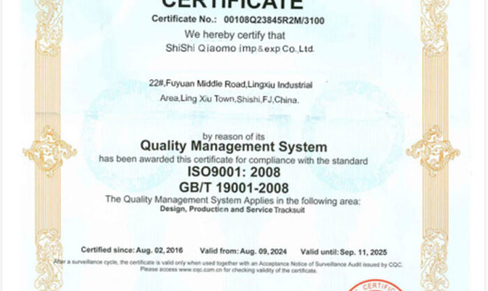 We’ve passed the ISO9001:2008