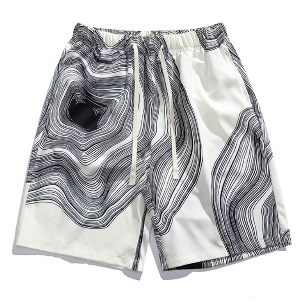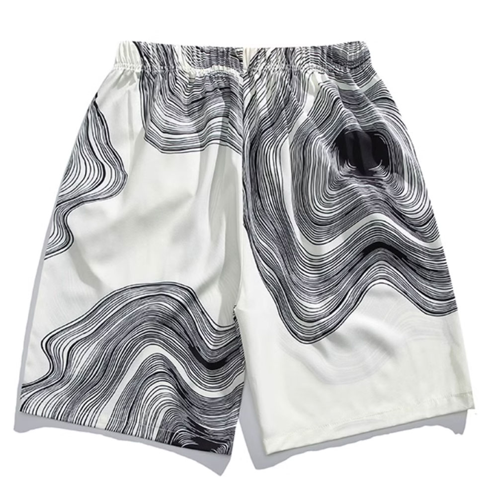 The men’s beach shorts are made of 95% polyester and 5% spandex,it offers a blend of stretch and resilience. The sleek black color and bold “1986” graphic on the side add a touch of urban – sporty style. Ideal for beach fun or casual outings, they ensure comfort and a trendy look.