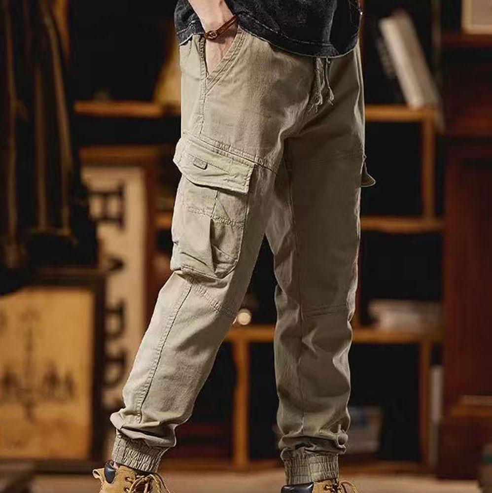 These men’s cargo pant is made of 97% cotton and 3% polyester, it offers a soft, breathable feel along with lasting durability. The multiple pockets ensure ample storage. The elastic feet cuff ankles not only provide a trendy look but also keep out the elements. Ideal for both style and functionality.