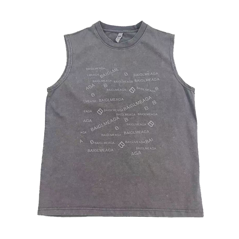The men’s T-shirt is made of 100% cotton. The vintage -wash process gives it a cool, worn – in look. The style with repeated “BAIGLMEAGA” prints, it’s a trendy piece that stands out, perfect for a casual, edgy outfit.