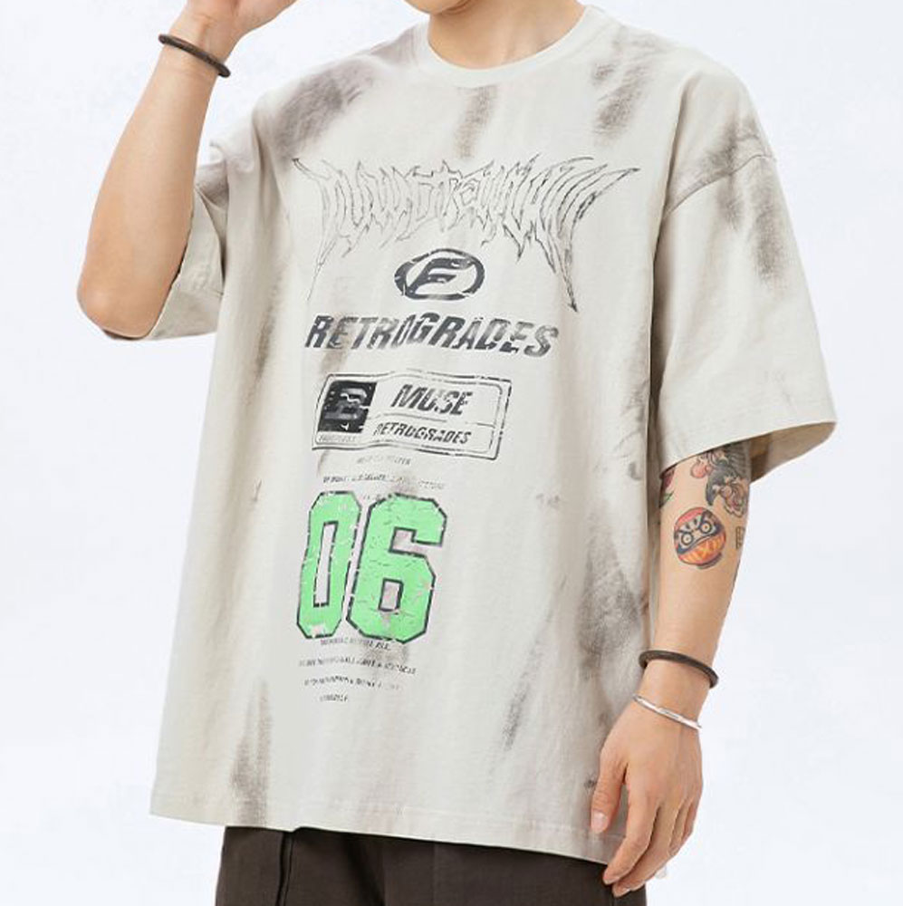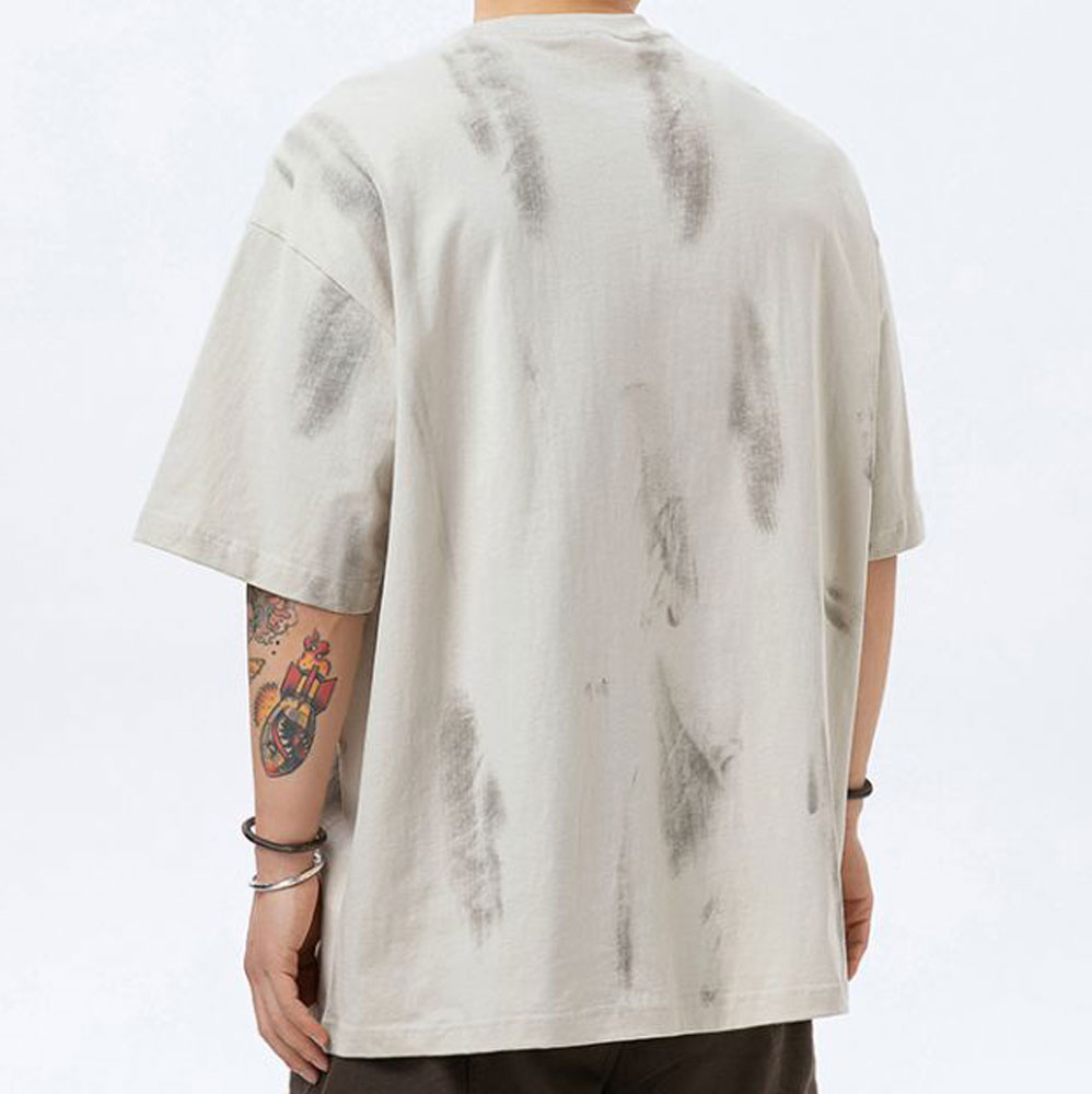 This men’s T-shirt is made of 250g 100%cotton fabric,ensuring comfort and breathability. 2 colors as pics.It features large scale American style patterns and a vintage, washed – out look. With fine details at the collar and hem, it’s both stylish and high – quality. A must – have for a trendy wardrobe!
